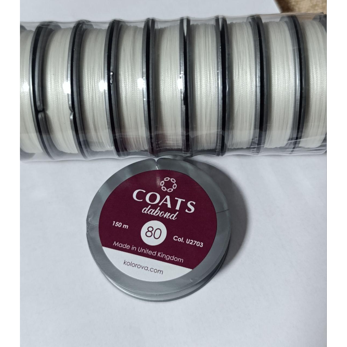 Нитки Coats Dabond 80 білий, 150 м, поліестер, шайба